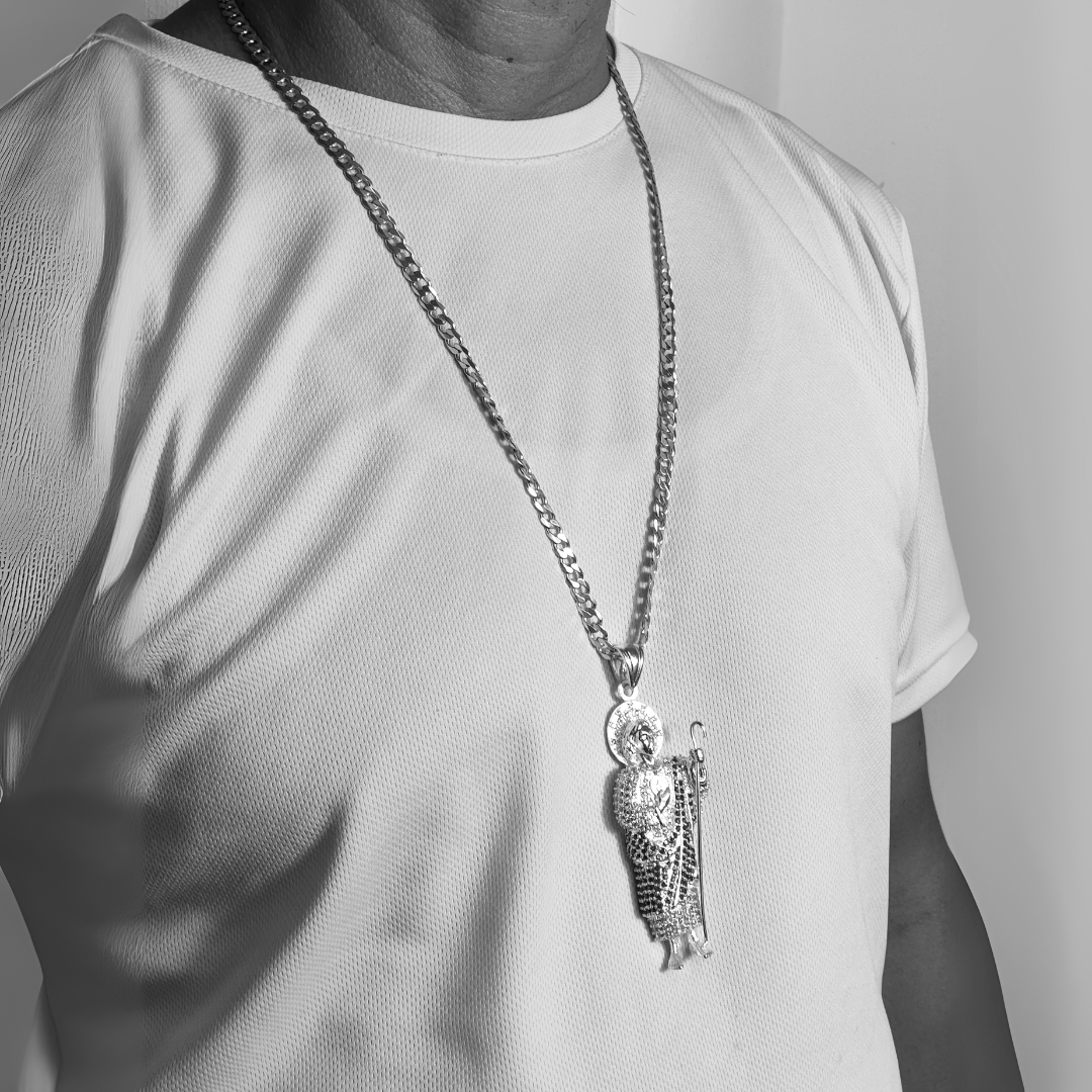 Dije de San Judas de Plata Tamaño Jumbo de 8 cm de Alto x 3.3 cm de Ancho Con Cadena de Plata Calvario Joyas